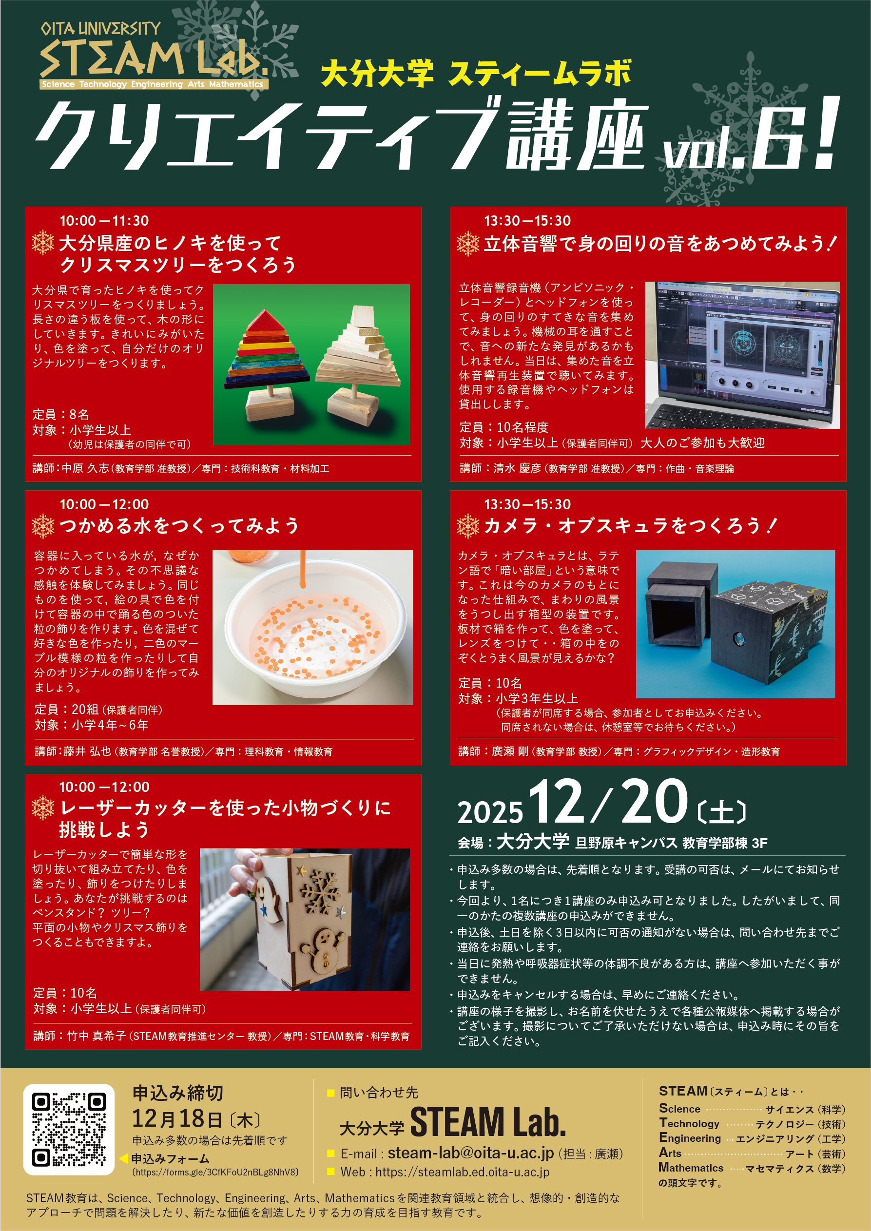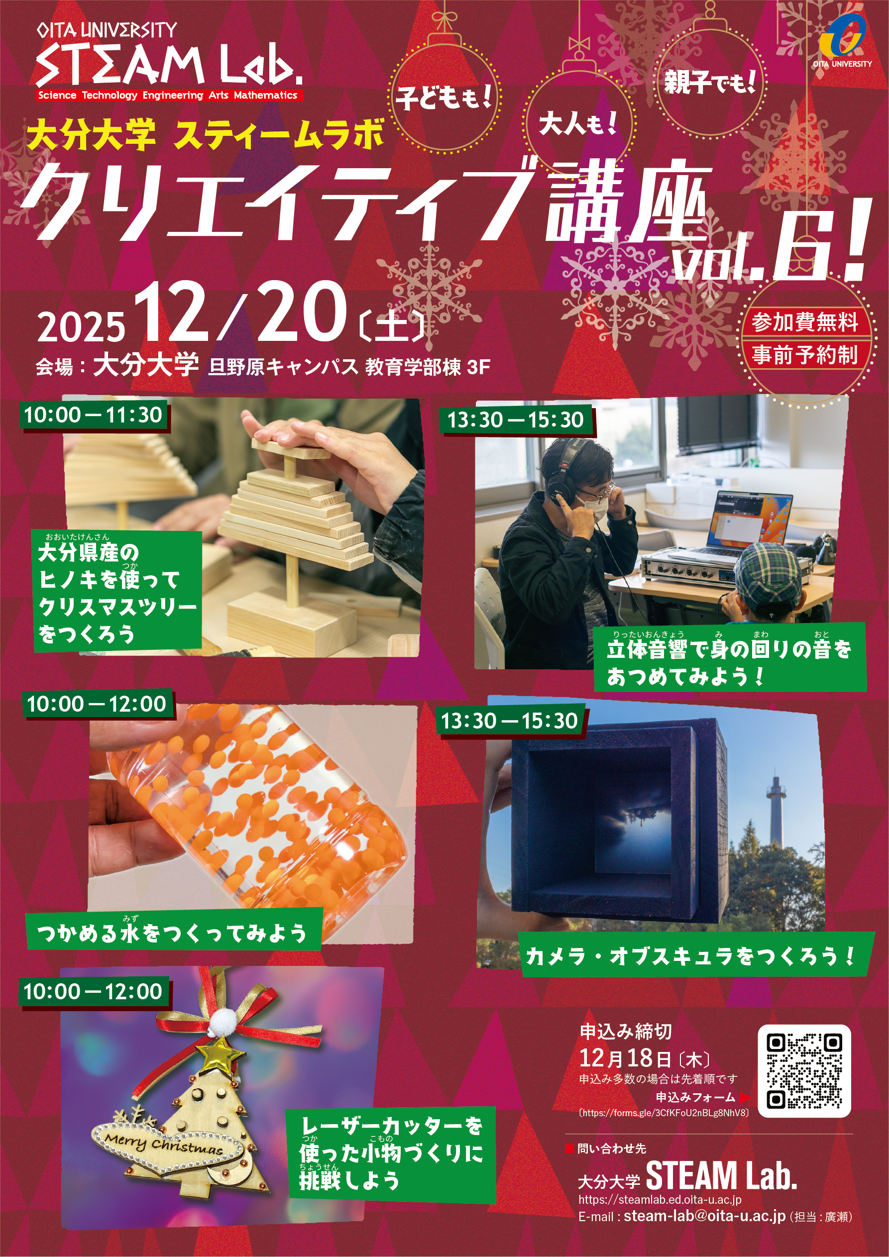 >参加者募集のお知らせ「大分大学STEAMLab.クリエイティブ講座Vol.6」