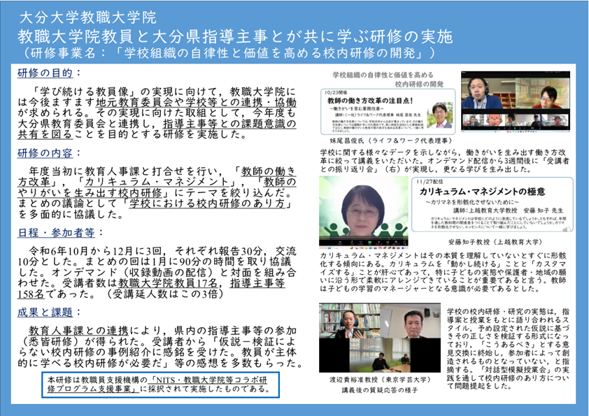 〇教職大学院教員と大分県指導主事とが共に学ぶ研修の実施