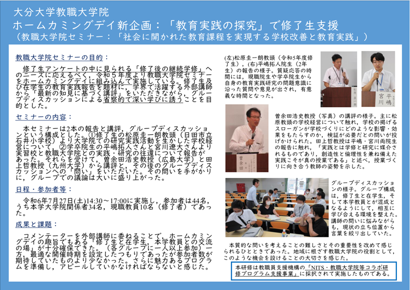 〇ホームカミングデイ新企画:「教育実践の探究」で修了生支援